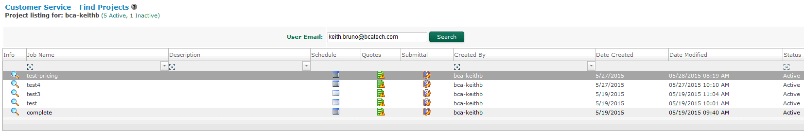 For example, if a Regional Sales Manager wanted to locate a project that one of his or her sales representatives is working he or she can locate using the Find Projects tool. In order to use the tool the user must have the permission level of Application Engineer, Customer Service, Pricing Administrator or System Administrator.